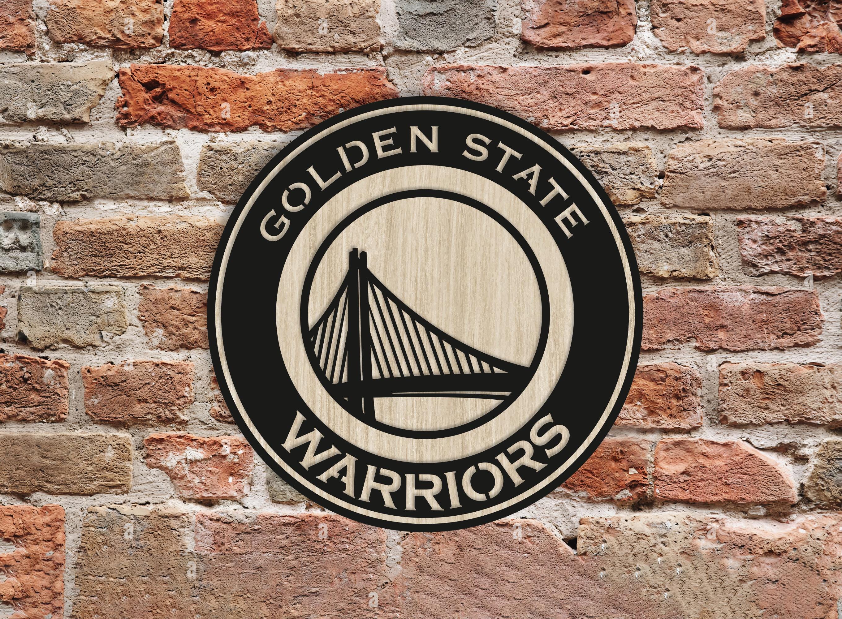 Golden State Warriors Wooden Wall Decor, Laser Cut Design with Light and Black Wood Layers, Rustic Sports Team Art for Home or Office